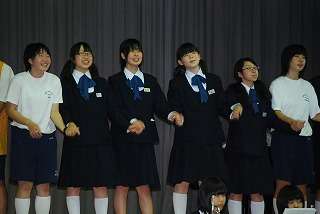 ※閉会式の様子です。吹奏楽部の演奏に合わせて、みんなで『we are the world』を合唱しました。