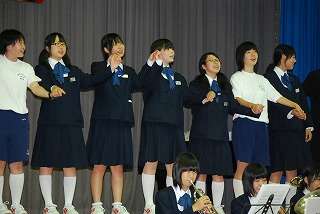 ※閉会式の様子です。吹奏楽部の演奏に合わせて、みんなで『we are the world』を合唱しました。