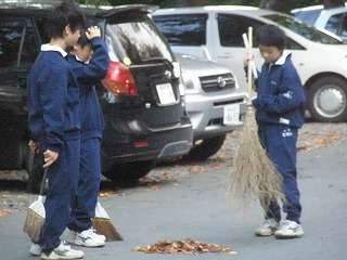 感謝しています!体操部が朝の落ち葉集めの清掃活動☆(その3)