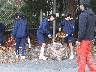 体操部が、毎朝、落ち葉集めの活動を行ってくれました。話を聞くと今日21日(水)が最終日であるとか?これからが「かき入れ時」の落ち葉集めです。今までありがとうございました。さて〜、明日からどうしましょうか?