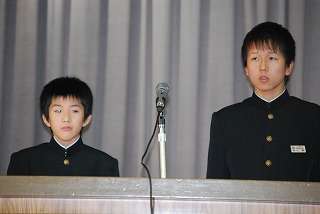 ※生徒会役員選挙で全校生徒へ自分の公約を堂々と発表する候補者とその責任者です。