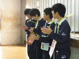 ※11月25日(水)の6校時、3年生を激励する会の取り組みを始めた1年生の様子です。