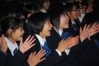 ※12月4日(金)に行われた『3年生を送る会』の様子です。現在の3年生を1年生、2年生で担当していただいた先生方からビデオメッセージをいただきました。平澤先生、田中先生、佐藤亨先生、村田先生そして福島先生ありがとうございました。生徒は「なつかし〜」という声と笑いのビデオレターでした。