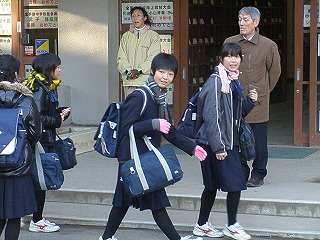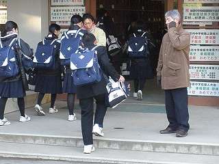 ※12月8日(火)元気に登校する様子です。12月2週目を過ぎたのに、生徒昇降口前の落ち葉集めをしました。?どうなってんの?
