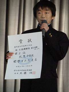 12月1日(火)今月最初の全校朝会を行いました。体操部男子の1年生から県新人大会第3位の報告、男子バレーボール部の1年生から「1年生大会第3位となり、12月5日(土)に行われるブロック大会へ出場できます」という報告、2年生の中村選手から「トヨタテニストーナメント岩手県予選会で、準優勝しました」という報告が行われました。