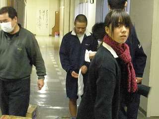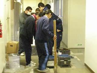 ※12月11日(金)の放課後、廊下のワックス塗りをする管理局の生徒の様子です。最後の生徒は6時過ぎまで、最終段階の場所のワックス塗りをしてくれました。きれいな廊下で年を越すことができると思います。
