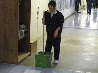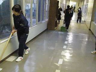 ※12月11日(金)の放課後、廊下のワックス塗りをする管理局の生徒の様子です。最後の生徒は6時過ぎまで、最終段階の場所のワックス塗りをしてくれました。きれいな廊下で年を越すことができると思います。