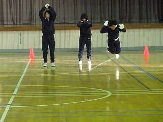 今朝も寒い朝でした。自転車での登校ができなくなりましたので、登校するのも大変です。しかし朝のトレーニング参加者は、朝早く集まり練習に取り組んでいます。歩道で雪払いをしている私に「今日の朝のトレーニングは雪払いですか?」「雪が少ないので、私だけで十分ですから、トレーニングしてください」に大きな返事で答えてくれました。今日の朝のトレーニングには、「新メニュー」が登場しました。連続飛びの練習でしょうか?指導者は考えながらの練習です。見ていましたが、慣れていないせいもあり戸惑っていた参加者でした。寒くなり朝起きることが大変ですが、弱い自分に「喝!」を入れて登校です。