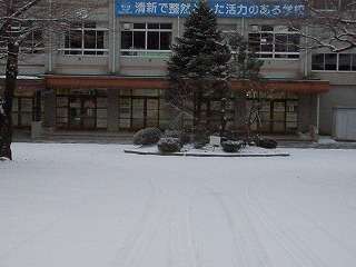 12月18日(金)朝起きると雪が積もっていました。今年度初めての雪かきとなりました。日本海地方では大変な大雪とのこと。盛岡の雪は「かくほどの雪」ではないことは幸いでした。2年生の生徒たちが7時40分頃から生徒昇降口付近の雪払いをしました。これからもたくさんの生徒に参加して欲しいと思います。