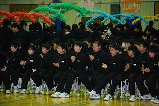 12月4日(金)午後1時45分から『3年生を励ます会』が行われました。今まで2月下旬に行っていた『3年生を送る会』を12月実施にした生徒会企画です。「今年は、中止にしようか?」と考えていましたが、生徒会執行部が「自分たちで取り組んで成功させます。取り組ませてください」と要望があり実現した企画です。短時間での練習でしたが、1,2年のリーダー達はよく取り組んでくれました。楽しい企画になりました。