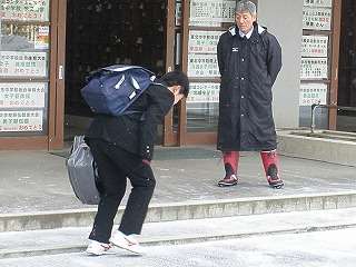 自転車での登校はすでに禁止されていますので徒歩での登校になります。人も車も安全に気をつけて登下校しましょう。