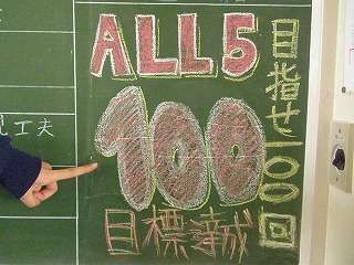 1年3組も『オール5取り組み』100回達成☆学年3位の早さです☆1年3組!おめでと〜う(^o^) 全員でお祝いです!