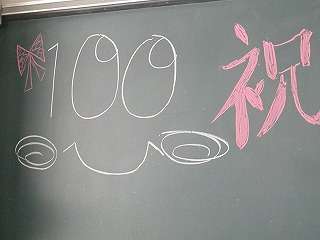 12月24日(木)1年6組の帰りの会に呼ばれました。教室では全員で記念撮影の準備をしていました。教科連絡黒板には『オール5取り組み』100回達成の掲示がありました。やったね!1年6組。『オール5取り組み』99回が何日も続き、やきもきしている担任。2学期も残すところ2日間での達成です。4月から全校で取り組んできた『オール5取り組み』でしたが、学級の力を示すこの評価。素晴らしい実績です。さらに目標を高めて取り組んでほしいと思います。1年生で一番早かったのは、1年4組、2組、3組ですから引き続いての達成です。