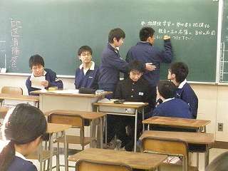10日(木)の放課後、地区集会が持たれました。25日(金)に行われる「地区一斉奉仕活動」の内容と持ち物、集合場所の確認をしました。いよいよ雪の季節です。地域で雪かきが始まります。たくさんの中学生が活動する地域の活動を目指しましょう。