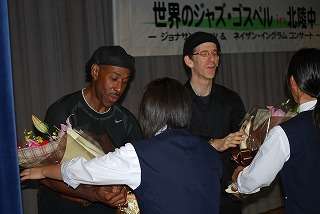 ※10月3日(土)13:30から「世界のジャズ・ゴスペル in 北陵中 〜ジョナサン・カッツ&ネイザン・イングラムコンサート〜」と題して、「ジョナサン・カッツさんとネイザン・イングラムさん」のジャズコンサートが行われました。北陵祭に合わせての開催としました。今まで聞いたことのないジャンルの音楽でした。
