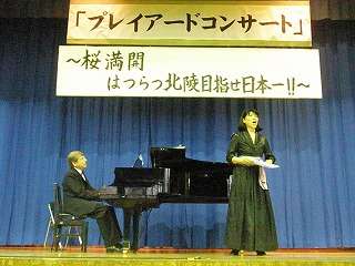 ※4月21日(火)午後2時30分から北陵中学校体育館で『プレイアードコンサート』が行われました。フランスからフルート演奏家の橋本量至さん、ヴァイオリン演奏家の橋本寿子さん、ピアノ演奏家のPierre Delgrangeさん、ソプラノ歌手の高橋信子さんの4人とPierreさんの奥さんの5人をお迎えしてのコンサートでした。