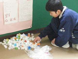 ※12月11日(金)「ペットボトルのキャップ集め」の活動をするSKET委員会の生徒の様子です。