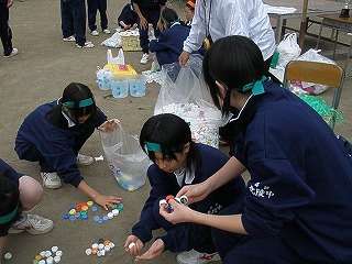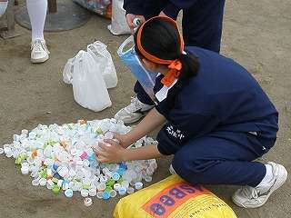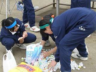 ※5月体育祭で「ペットボトルのキャップ集め」の活動をするSKET委員会の生徒の様子です。