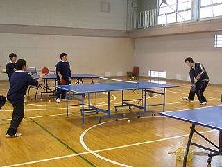 12月28日(月)土淵活動センターで大学生3人を迎え練習相手をしていただきました。2人は前日にアドバーザーしてくれた人ですが、もう1人にはわざわざ来ていただきました。彼は中学校時代、岩手県中総体の個人戦で優勝したカットマンです。自分の学校内にカット練習のできる相手がいませんので、特別に来ていただき練習させてもらいました。練習相手をしていただきながら、一人一人に打ち方のアドバイスをいただきました。短い時間の練習でしたが、有意義な時間となりました。これからたくさん練習していきます。