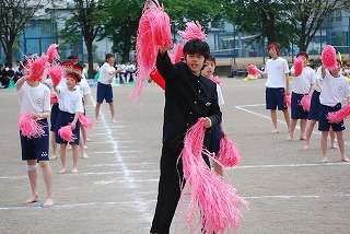 緑組団(5組団)の団長は、川島君。川島君のかけ声の下、緑組団(5組団)はまとまって応援に取り組みました。