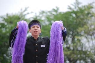 紫組団(1組団)の団長は、荒谷君。荒谷君のかけ声の下、紫組団(1組団)はまとまって応援に取り組みました。