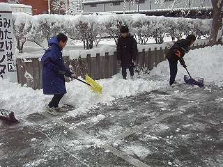 男子卓球部です☆部活動の前にお借りしている「みたけ活動センター」の雪かきです!