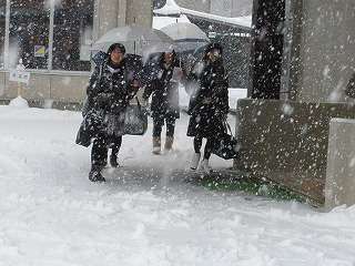 1月5日(火)朝7時30分。吹奏楽部が秋田市の山王中学校へ1泊2日で遠征に行きました。しかし突然の大雪。なにやら46号線が心配ですが、たくさん学んで来て今後の練習に役立ててほしいと思います。