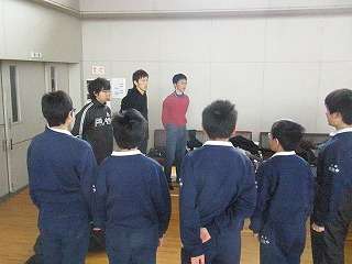 12月28日(月)土淵活動センターで大学生3人を迎え練習相手をしていただきました。2人は前日にアドバーザーしてくれた人ですが、もう1人にはわざわざ来ていただきました。彼は中学校時代、岩手県中総体の個人戦で優勝したカットマンです。自分の学校内にカット練習のできる相手がいませんので、特別に来ていただき練習させてもらいました。練習相手をしていただきながら、一人一人に打ち方のアドバイスをいただきました。短い時間の練習でしたが、有意義な時間となりました。これからたくさん練習していきます。