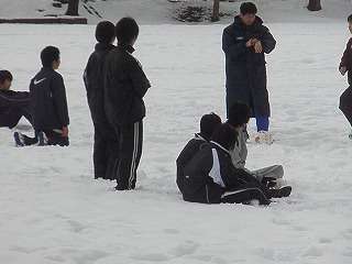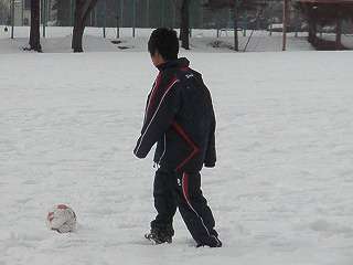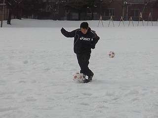 ※1月7日(木)雪の校庭でドリブル練習をするサッカー部の活動の様子です。