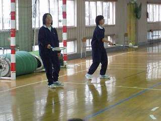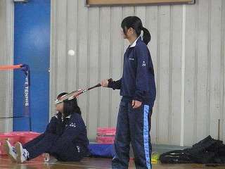 ※1月6日(水)女子ソフトテニス部の活動の様子です。体育館で、顧問の指導を受けながら、ボール突きの練習に取り組んでいました。