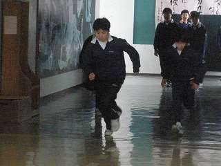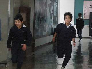 ※1月6日(水)男子ソフトテニス部の活動の様子です。体育館が使えませんので、廊下を使っての練習です。