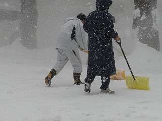 昨日の大雪は大変でした。朝、しっかりと雪かきをした生徒昇降口前も昼には歩くのも大変なくらいの雪となりました。午前中学習会をした先生方総出で、雪かきをしました。