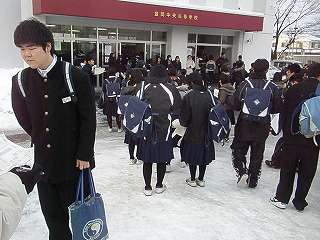 ※1月16日(土)中央高校の入試の朝の様子を撮影に行きました。この日も寒い朝となりました。最低気温はマイナス7度でした。頑張れ!受験生!頑張れ!北陵生!