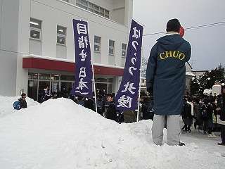 1月16日(土)中央高校の入学試験が始まりました。北陵生が一番多く受検する高校と言うこともあって、取材に行きました。約2000人近くの受験生が学校の先生から点呼を受け会場会場と向かいました。何人かの生徒にインタビューしましたが「やや緊張していますが、全力を尽くしてきます」と答えてくれました。「目指せ!日本一!」「はつらつ北陵」の旗がひときわ目立ちました。明日も中央高校の前期入試が行われます。