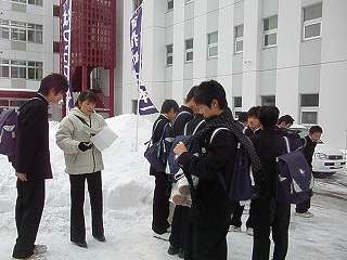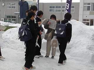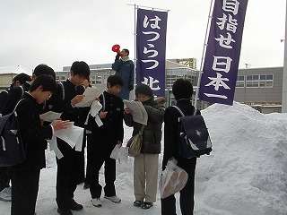 1月16日(土)中央高校の入学試験が始まりました。北陵生が一番多く受検する高校と言うこともあって、取材に行きました。約2000人近くの受験生が学校の先生から点呼を受け会場会場と向かいました。何人かの生徒にインタビューしましたが「やや緊張していますが、全力を尽くしてきます」と答えてくれました。「目指せ!日本一!」「はつらつ北陵」の旗がひときわ目立ちました。明日も中央高校の前期入試が行われます。