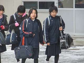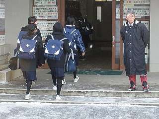※1月15日(金)登校する生徒の様子です。「学期の始まり」ということもあって、今日はPTA会長はじめ、「おやじの会」の方々も挨拶運動に取り組みました。