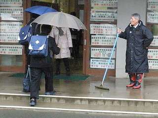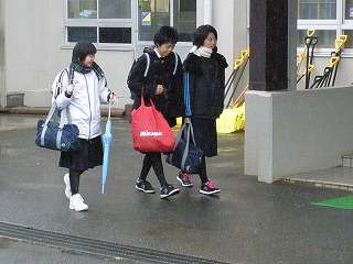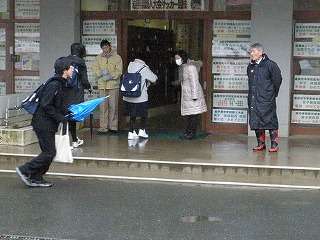21日(木)は昨日から降り続いている雨の中の登校となりました。雪がないところはいいのですが、雪のある歩道は滑る滑る。みんな、「ソロリソロリ」の登校となりました。特に3年生は滑って転んだり、けがをしたりしては大変です。手を出して歩く必要がありますね。手袋をして登校しましょう。