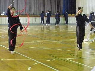※1月7日(木)女子新体操部の活動の様子です。冬休み中で、コーチの先生が来て直接指導していただきました。このコーチの先生は福島先生の教え子だったということでした。