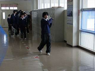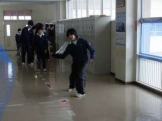 ※1月12日(火)男子ソフトテニス部の活動の様子です。3階廊下で乱打練習をしていました。