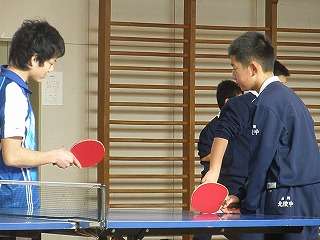 ※1月9日(土)「厨川活動センター」で卓球の技術指導を受ける生徒の様子です。