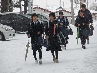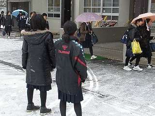 ※1月25日(月)登校する生徒の様子です。2年生の学年生徒会のメンバーが今日も挨拶運動に取り組んでくれました。