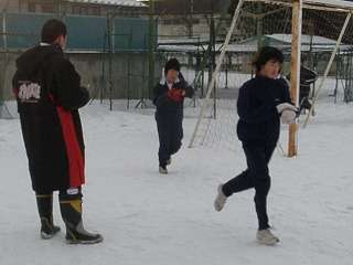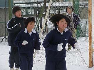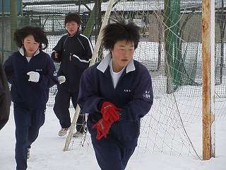 今朝の校庭は昨日とけてから凍った分、滑る!滑る!。その中でも「駅伝練習」が始まりました。カーブで転倒する生徒もいましたが、大丈夫です。元気に今日も校庭を走り回りました。