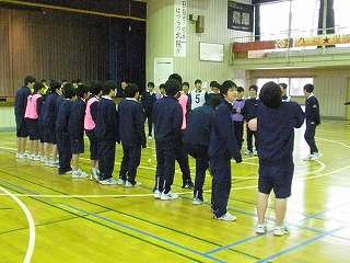 1月25日(月)の5,6校時、「2年生のクラスマッチ」が行われました。今回は2年生のクラスマッチに2学年PTAが協力し、「PTA学年レク」として行われました。男女に分かれて、ソフトバレーボールで「ドッジボール」を行い、楽しい時間を過ごしました。男子の1位は7組、2位は2組、3位は5組でした。女子の1位は1組、2位は5組、3位は7組でした。男子からも女子からも歓声が聞こえました。参加した保護者の皆さんも、生徒と一緒になって動き回りました。ソフトバレーボールとはいいながら、投げるボールの早さは結構早いんです。悪天候の中、たくさんの方々に参加していただき感謝しています。