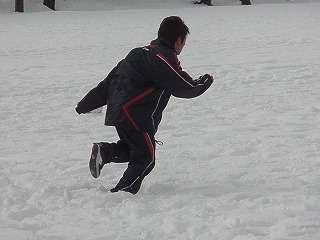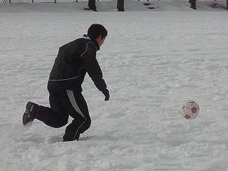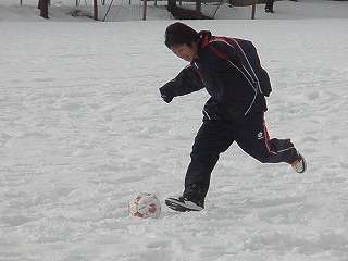 ※1月7日(木)雪の校庭でドリブル練習をするサッカー部の活動の様子です。30日(土)、31日(日)遠野市でフットサル県大会が行われます。