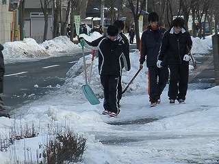 雪が降って除雪が必要な場合には、学校に連絡をしていただければ、地域の生徒たちが放課後お手伝いに行く準備もしています。どうぞ、声をかけてください。