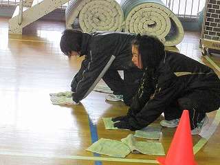 マイナス15度となったこの日も、朝のトレーニング参加者は元気に登校し、練習に参加しました。体育館の寒いこと、寒いこと。その中でも頑張ります。体育館ではストーブをたいていますが、全く効果なしで練習に取り組みました。