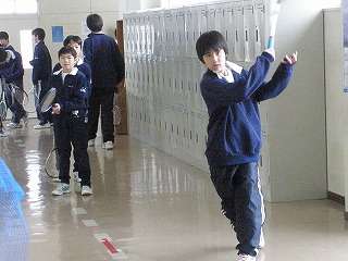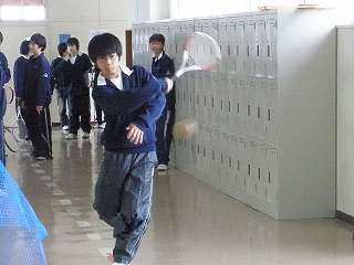 ※1月12日(火)男子ソフトテニス部の活動の様子です。3階廊下で乱打練習をしていました。