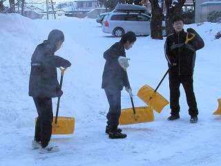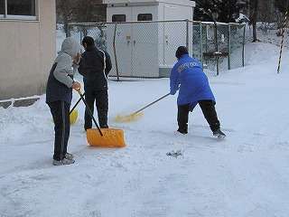 卓球大会へ出発前に雪かき☆気がついて自分たちで取り組んだことが凄い、優しい生徒たちです