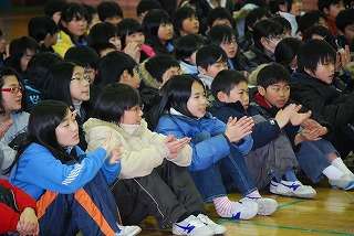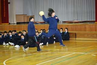 ※2月8日(月)北厨川小学校での様子です。女子ハンドボール部と男子バレーボール部の発表の様子です。