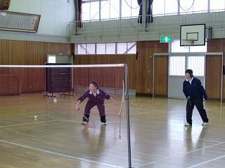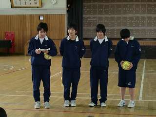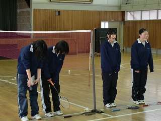 ※2月8日(月)月が丘小学校での様子です。女子バドミントン部、男子ハンドボール部の様子です。